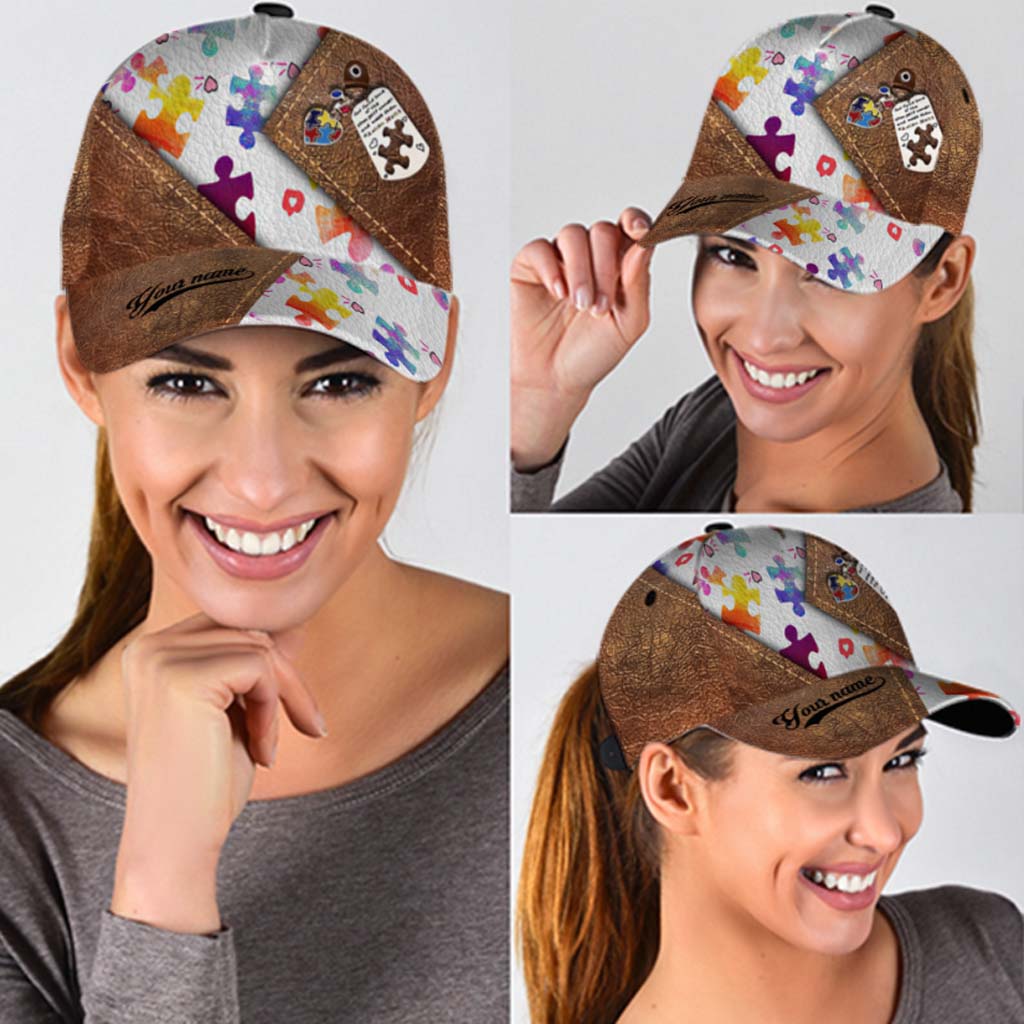 Casquette personnalisée en cuir imprimé à motif pour la sensibilisation à l'autisme, avec trous d'aération imprimés