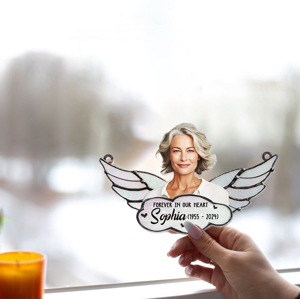 À jamais dans nos cœurs - Ornement commémoratif personnalisé à suspendre à la fenêtre, attrape-soleil