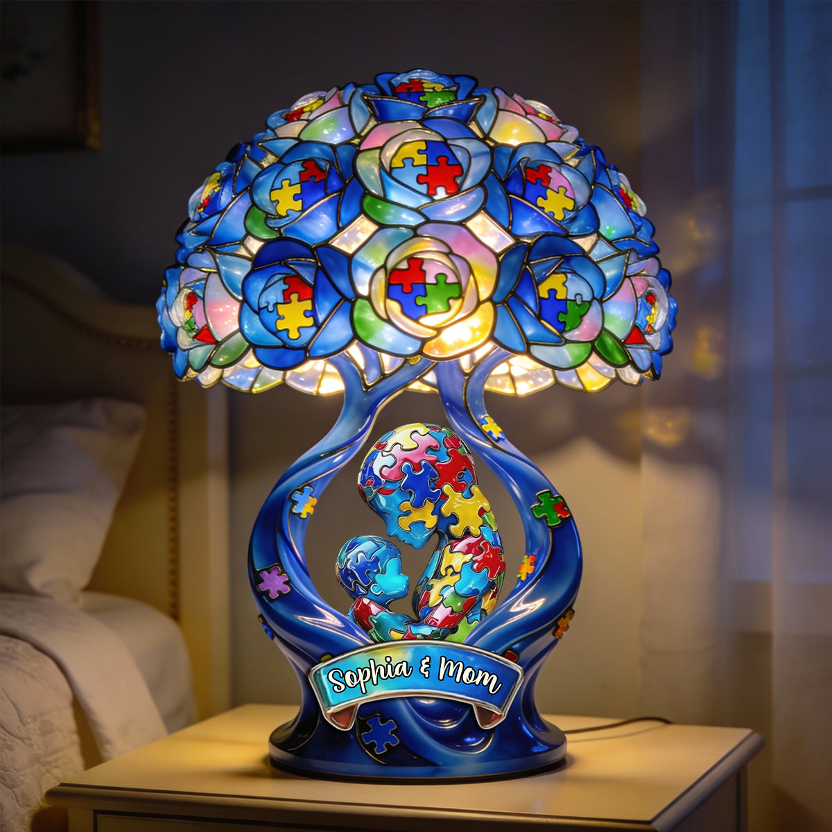 Veilleuse LED acrylique personnalisée « Maman Forte » : le cadeau idéal pour maman ! Sensibilisation à l’autisme.