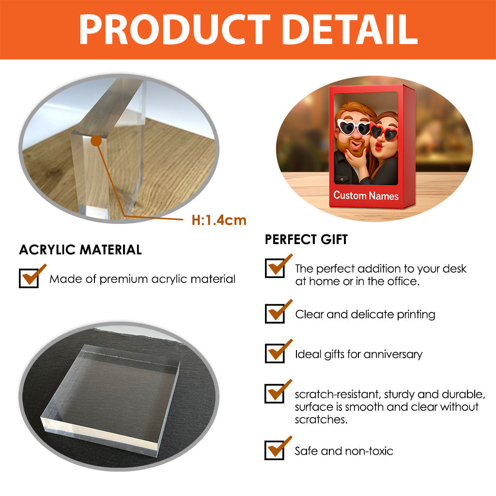 (TEST) Cadeau humoristique, style mascotte exagérée et cartoon - Plaque acrylique personnalisée pour couple (Copie)